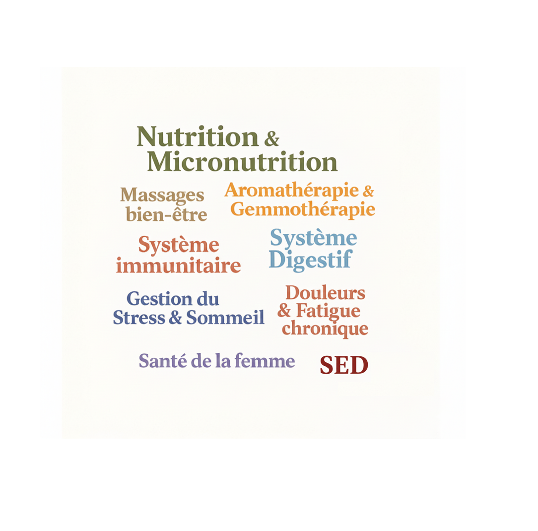 Je suis thérapeute en santé intégrative et holistique à Rambouillet. Découvrez une approche globale pour une santé optimale, regroupant micronutrition, aromathérapie, gemmothérapie et massage bien-être. Ensemble, explorons la santé fonctionnelle pour révéler votre plein potentiel.